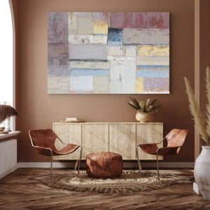 - En abstrakt målning i pastellfärger med en geometrisk komposition. Perfekt för moderna interiörer, den ger harmoni, lugn och en subtil konstnärlig touch.
