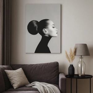 - Denna svartvita målning föreställer en kvinnas profil med en elegant knut. Det är det perfekta valet för älskare av minimalistisk och elegant inredning.