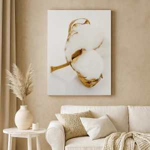 Den ljusa bakgrunden framhäver bomullens detaljer, såsom de mjuka fibrerna och subtila färgerna, vilket skapar en känsla av lätthet och harmoni. Denna dekoration ger lugn och naturlig charm till interiören, inspirerar till reflektion och avkoppling. Det är det perfekta valet för dem som värdesätter kontakt med naturen och vill införliva dess element i sitt hem.