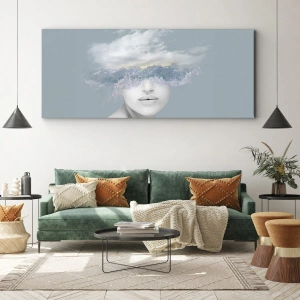 Målningens komposition sticker ut med sina pastellfärger och en unik kombination av naturelement och porträtt. Motivet med moln och vågor introducerar en atmosfär av lugn och reflektion i interiören, samtidigt som det ger interiören en konstnärlig touch. Det är en perfekt dekoration för ett vardagsrum, sovrum eller kontor, och berikar utrymmet med subtilitet och kreativitet.