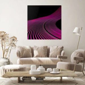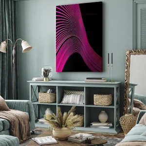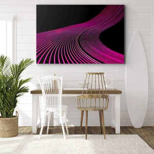 Canvastavlan "Ljusgränd" är en unik dekoration som drar uppmärksamhet till sig med sin enkelhet och moderna karaktär. Intensiva rosa linjer som slingrar sig mot en djupsvart bakgrund skapar en neonljuseffekt som introducerar dynamik och elegans i interiören.