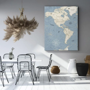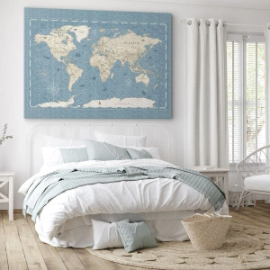Canvastavlan "Världen vid dina fingertoppar" är det perfekta valet för resentusiaster och de som söker geografisk inspiration. Världskartan, återgiven i subtila pastellnyanser av blått och beige, gläder sig med sin vintage-estetik och ger den en unik karaktär.