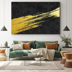 Väggkonst - Hoppa in i Hyperspace - Svart bakgrund med ett dynamiskt guldfärgat penseldrag