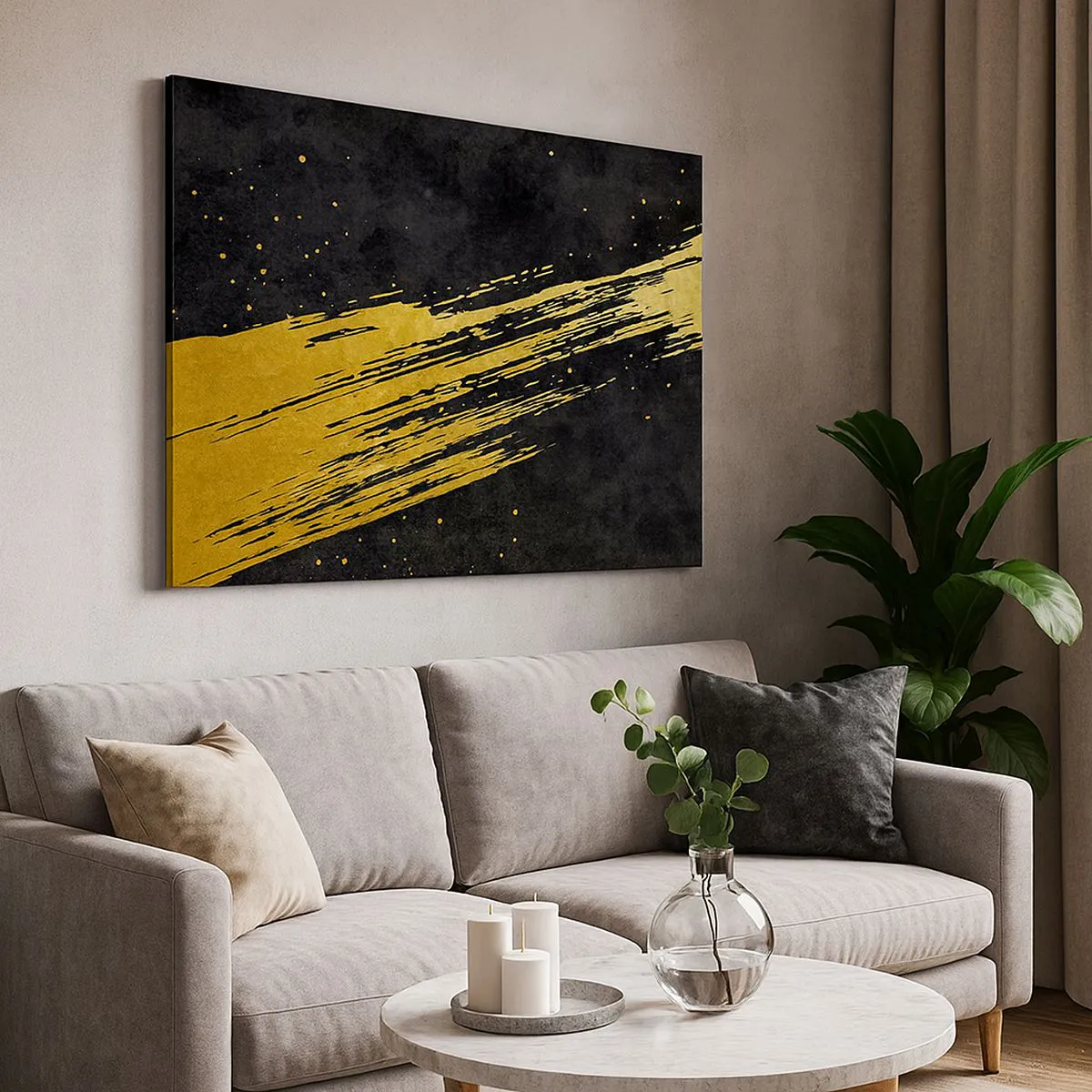 Duken är uppspänd i ramen. Sidor och kanter är täckta med tryck och skapar en fortsättning av bilden. Bilden är klar att hängas på väggen. Varje produkt har en ögla som är fastsatt i ramen samt en monteringssats (skruv + plugg).