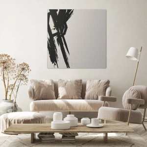 "Unrestrained Rush" är en dynamisk målning som gläds med sitt uttryck och moderna karaktär. Uttrycksfulla svarta penseldrag mot en ljus bakgrund skapar en abstrakt komposition full av energi och rörelse. Detta motiv är perfekt för interiörer som behöver en distinkt konstnärlig accent, vilket ger en unik karaktär och stil.