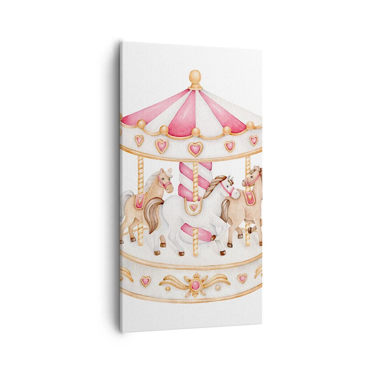 Duken är uppspänd i ramen. Sidor och kanter är täckta med tryck och skapar en fortsättning av bilden. Bilden är klar att hängas på väggen. Varje produkt har en ögla som är fastsatt i ramen samt en monteringssats (skruv + plugg).