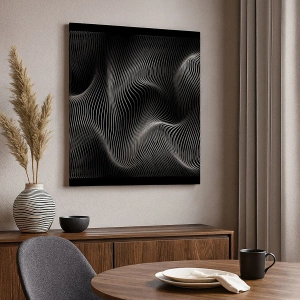 - Denna målning avbildar abstrakta vita linjer mot en svart bakgrund. Ett djärvt och elegant minimalistiskt motiv, perfekt för moderna inredningar som vardagsrummet, kontoret eller sovrummet.