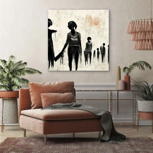 Canvastavla - Bild på duk - Figurer i en monokromatisk komposition mot en ljus bakgrund - 70x50cm - Mot ensamhet - Modern väggdekoration för vardagsrum och sovrum ARTTOR