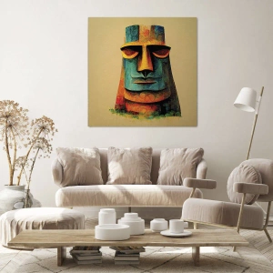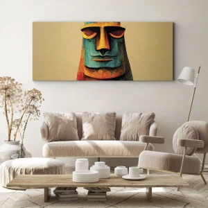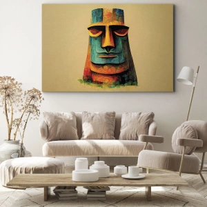 Canvastavlan "Statulik, men ändå behaglig" avbildar en unik staty från Påskön i livfulla, färgglada nyanser. Dess unika design och intensiva färger ger uttrycksfullhet och energi till interiörer.