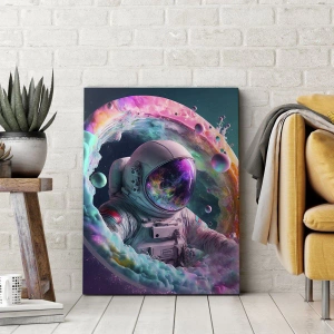 Rymdmotivet i astronaut-målningen är en symbol för utforskning, nyfikenhet på världen och oändliga möjligheter. Färgglada accenter i kombination med en galaktisk bakgrund skapar en harmonisk helhet som passar både minimalistiska och mer uttrycksfulla inredningsstilar. Målningen kan också vara en inspirerande present till de som brinner för astronomi, vetenskap eller modern konst.