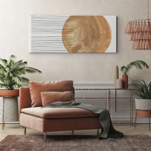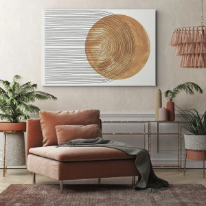 Väggmålning - Sunny Composition - Geometrisk komposition med en cirkel och linjer i varma färger