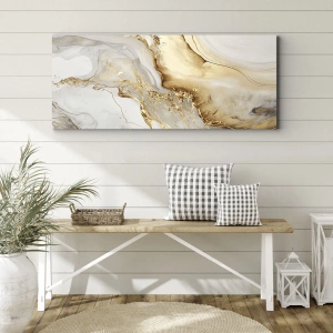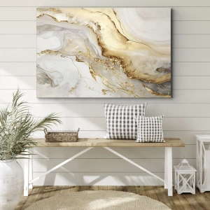• En abstrakt målning med marmormotiv och guldmönster mot en ljus bakgrund. Perfekt för att inreda en modern eller glamorös inredning, den ger en lyxig och elegant touch till vilket utrymme som helst.
