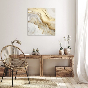 Skapad på högkvalitativ duk garanterar målningen hållbarhet och färgintensitet. Marmormotiv i delikata nyanser av beige och grått i kombination med guldaccenter skapar en harmonisk och sofistikerad komposition. Detaljerna i målningen betonar dess konstnärliga uttryck och ger djup till rummet.