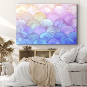 - Målningen avbildar abstrakta skalor i pastellnyanser av rosa, blått och lila. Den är ett perfekt komplement till moderna inredningar och ger harmoni och subtilitet.