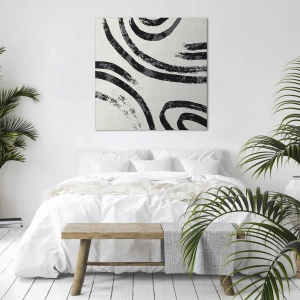 Canvastavla - Bild på duk - Svartvita abstrakta linjer på en ljus bakgrund - 70x50cm - Halvstoppad - Modern väggdekoration för vardagsrum och sovrum ARTTOR