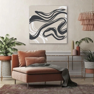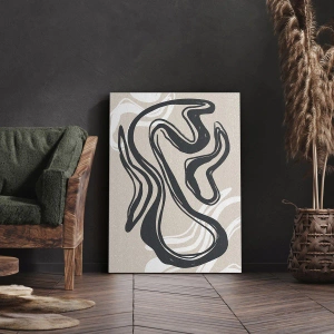 - Ett snyggt tryck med abstrakta linjer i mörka nyanser mot en beige bakgrund. Perfekt för minimalistiska och moderna inredningar.