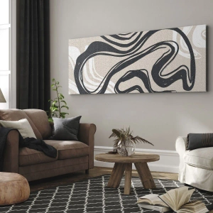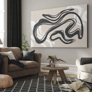 Canvastavla - Bild på duk - Abstrakta linjer i mörka nyanser på en beige bakgrund - 70x50cm - Mångfaldigt uttryck - Modern väggdekoration för vardagsrum och sovrum ARTTOR