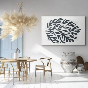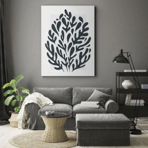 "Naturens former" är en elegant canvastavla som kombinerar subtil estetik med modern design. Kompositionen avbildar ett **mörkt lövmotiv** på en **ljus bakgrund**, vilket skapar en harmonisk och fridfull helhet.