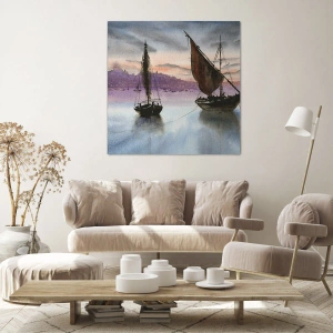 Canvastavla - Bild på duk - Kväll i hamnen - 140x50 cm