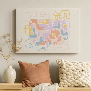 Väggkonst - Labyrint - Ett glädjefyllt äventyr - Pastellfärgade abstrakta linjer skapar geometriska mönster