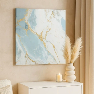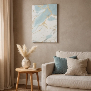 Canvastavlan "Blå marmor med gulddetaljer" är ett unikt alternativ för älskare av subtila kombinationer av färger och strukturer. Delikata blå och vita toner harmoniserar med varandra och skapar en marmoreffekt, som i kombination med de intrikat tillagda guldvenerna ger helheten en sofistikerad karaktär.