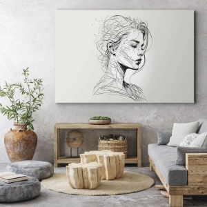 Väggkonst - Porträtt i tankar - Ett delikat porträtt av en kvinna i minimalistisk grafisk stil
