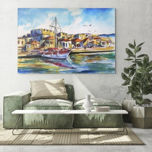 Bild på glas är tillverkad på 4mm tjockt glas. Glaskanterna har en trapetsformad matt fas. Bilden är säker i användning och klar att hängas upp - har metallöglor fastsatta på bildens baksida samt distanser av skum som säkerställer ett jämnt avstånd mellan bilden och väggen.