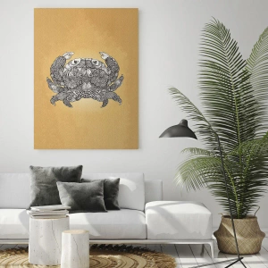 Väggkonst - Herr Krabbas berättelser - Stiliserad teckning av en krabba med ornament på gul bakgrund