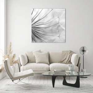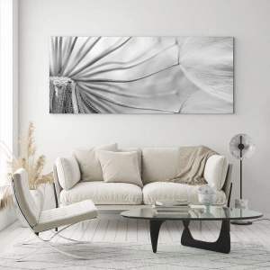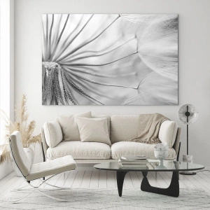 Glastavla - Bild på glas - Makrofotografi av en maskros i svartvita nyanser - 70x50cm - Blåsande, flygande drakar - Modern väggdekoration för vardagsrum och sovrum ARTTOR