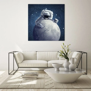 Glastavla - Bild på glas - Skojare i rymden - 50x50 cm