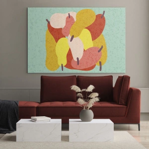 Väggkonst - Prova sommarsolen - Färgglada päron i grafisk stil mot turkos bakgrund