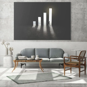 Detta motiv är integrerat i den moderna minimalismens estetik, vilket gör det perfekt för interiörer som kontor, vardagsrum och coworking-utrymmen. Det passar bra med enkla möbler, rena linjer och dämpade färger. Det kan fungera som en unik fokuspunkt och introducera både elegans och en inspirerande atmosfär i rummet. Det är ett verk med ett starkt visuellt budskap som dröjer sig kvar i minnet.