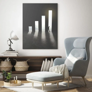 - Målningen avbildar silhuetten av en man som står med ljus som strömmar genom vertikala öppningar arrangerade i stigande ordning. Den symboliserar tillväxt, framgång och strävan efter mål. Den har en modern, minimalistisk stil.