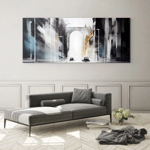 Glastavla - Bild på glas - Stadsstudie: arkitektur och rörelse - 30x30 cm