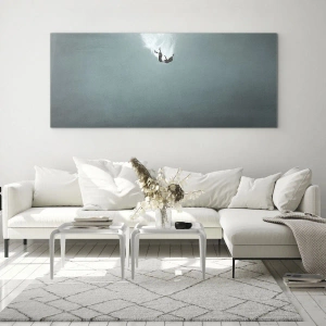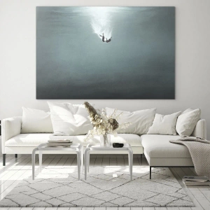 - En lugnande scen som föreställer en man som driver i havets djup, omsluten av mjukt ljus. Denna målning har en subtil atmosfär, perfekt för moderna, minimalistiska interiörer.