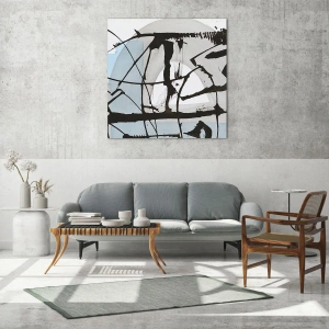- En modern abstraktion med dynamiska svarta linjer och blå stänk. Ett spännande samspel mellan kontraster och geometriska former. Perfekt för ett vardagsrum, kontor eller en inredning inredd i minimalistisk eller konstnärlig stil.