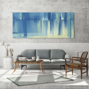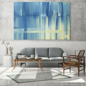 Målningen passar perfekt in i moderna arrangemang – i vardagsrum, kontor, coworking-utrymmen. Den kan fungera som ett centralt element i inredningen eller en subtil bakgrund. Tack vare sina universella färger smälter den perfekt in med ljusa och neutrala interiörfärger.