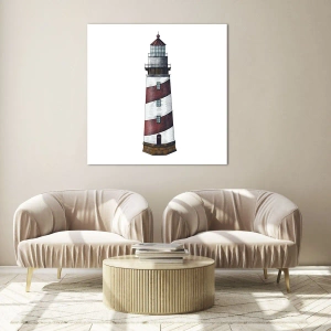 Glastavla - Bild på glas - Röd och vit fyr på en vit bakgrund - 70x50cm - Alltid på sin vakt - Modern väggdekoration för vardagsrum och sovrum ARTTOR