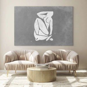 Denna komposition gläds med sin enkelhet, samtidigt som den uppmuntrar till reflektion och tolkning. Delikat definierade former skapar figuren av en kvinna försjunken i tankar, vilket introducerar en aura av tystnad och koncentration i interiören. Detta motiv är perfekt för utrymmen utformade för att främja lugn – sovrum, studior eller relaxområden.