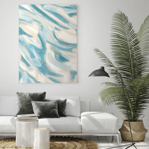 Glastavla - Bild på glas - Abstrakta penseldrag i blått och krämfärgat. - 70x50cm - Vårvindar - Modern väggdekoration för vardagsrum och sovrum ARTTOR