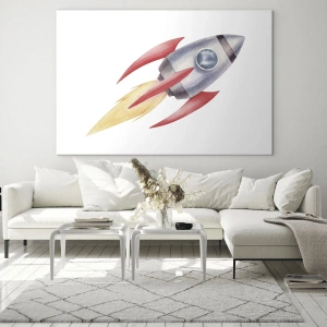 Väggkonst - Högre, snabbare, längre - Färgglad raket som flyger i rymden