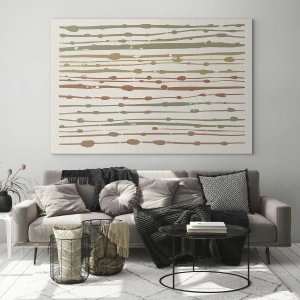 Glasbild "Musikalisk notation av färger" är en unik kombination av grafik och musik. Färgglada linjer och organiska fläckar bildar en harmonisk, visuellt rytmisk form som lockar uppmärksamhet och inspirerar.