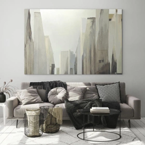 Glastavla - Bild på glas - En abstrakt vision av urbana byggnader i en dämpad palett - 70x50cm - En dröm om staden - Modern väggdekoration för vardagsrum och sovrum ARTTOR