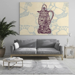 Väggkonst – Vardagslivets skönhet – En dekorerad vintagekanna mot en ljus bakgrund med en ornamentik