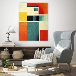 - En grafisk komposition av rektanglar i livfulla retrofärger. Denna målning utstrålar modern energi – perfekt för interiörer med vintagekänsla och 60-talsdesign.