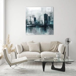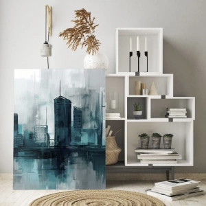 Glastavla - Bild på glas - Regnfärgad stad - 30x30 cm