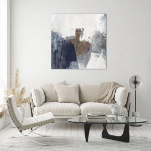Glastavla - Bild på glas - Blåbruna former - 50x70 cm