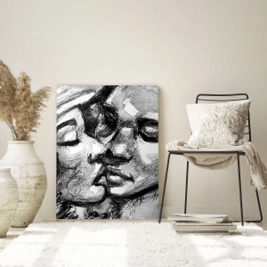 "Ömt ögonblick" är ett förslag för dem som värdesätter känslomässiga bilder inom konst och minimalistisk estetik. Tack vare kombinationen av svartvitt uttryck och subtila skissar drar bilden uppmärksamhet till sig, inspirerar och låter dig stanna upp en stund i vardagens rush.