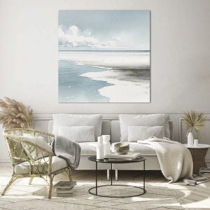 Glastavla - Bild på glas - Ett lugnt havslandskap i akvarellstil i blå nyanser. - 70x50cm - Milt tidvatten - Modern väggdekoration för vardagsrum och sovrum ARTTOR