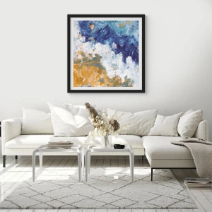 Affisch i svart ram - En abstrakt komposition i nyanser av blått, vitt och guld. - 50x70cm - Elementens dans - Modern väggdekoration för vardagsrum och sovrum ARTTOR